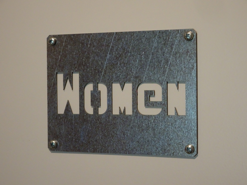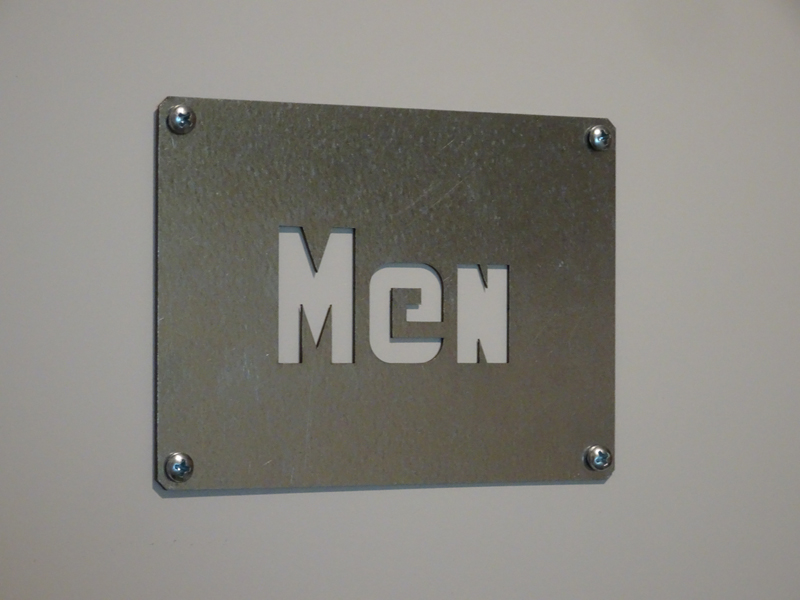 Make this unique industrial look a part of your building decor. These nice looking bathroom signs will help any industrial building, rustic restraunt, or trendy bar make a statement. Please consider these galvanized bathroom signs.